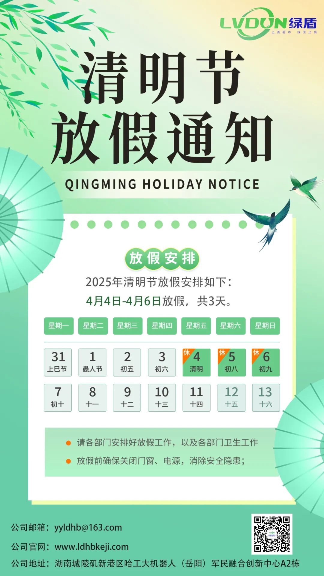清风暖阳,繁华绽放,新燕呢喃,春韵悠扬。 绿盾环保公司祝大家节日安康!